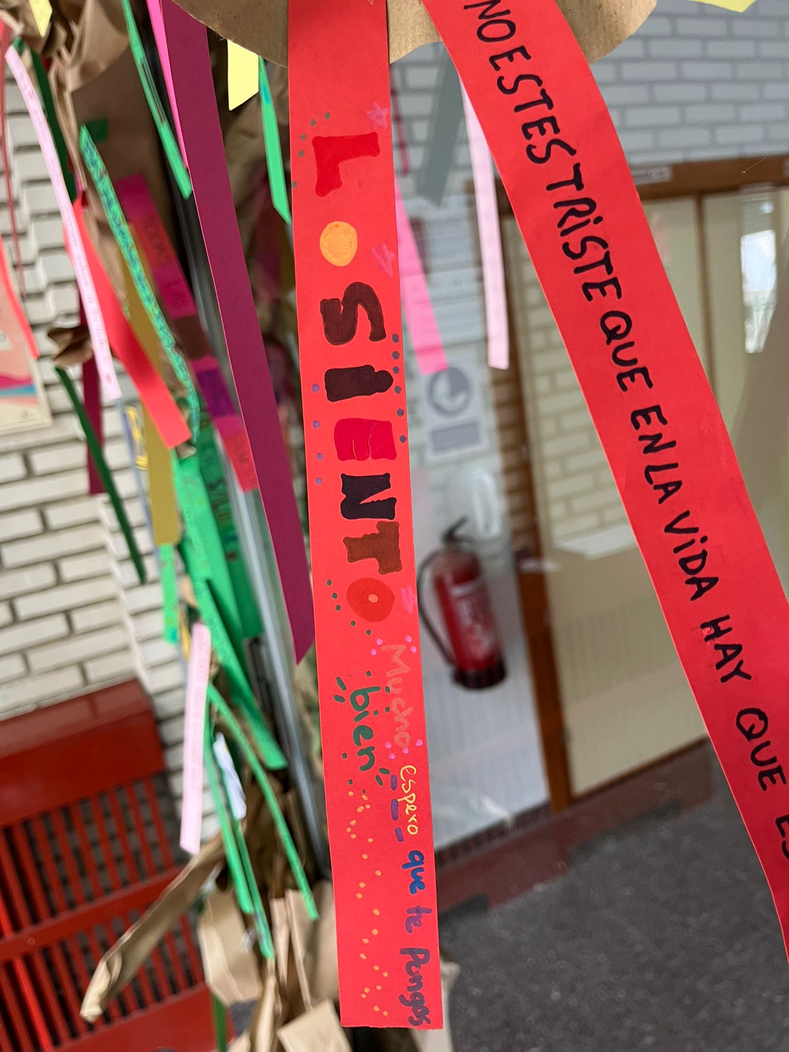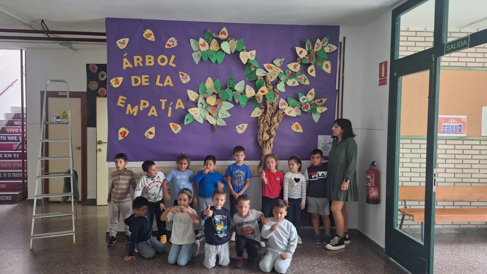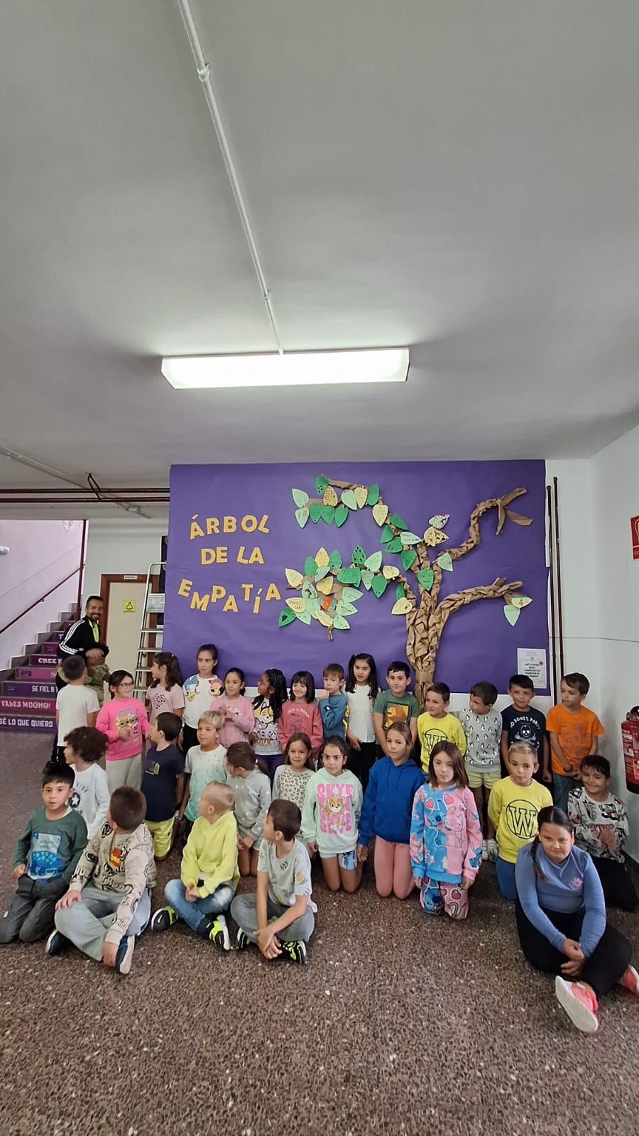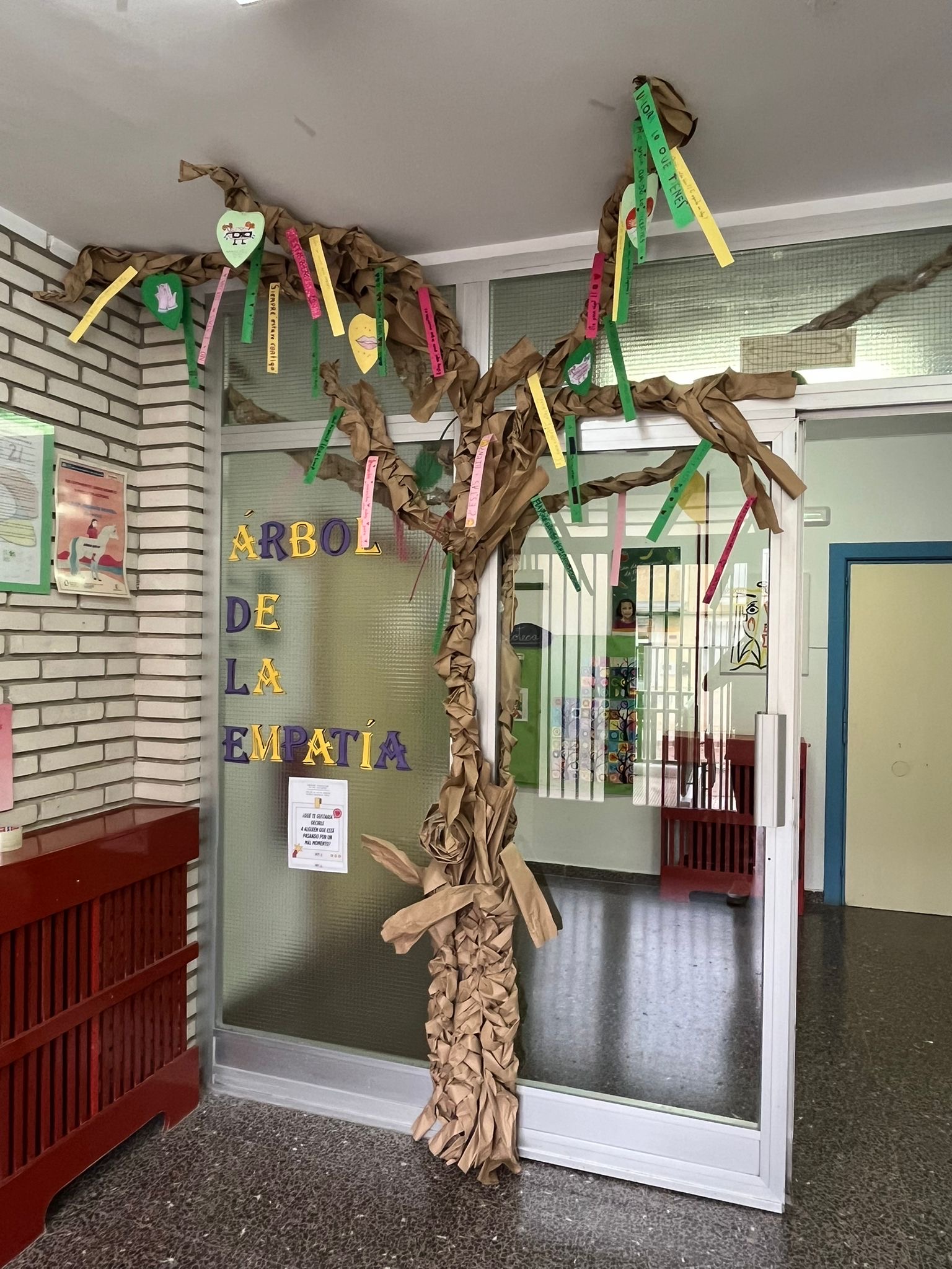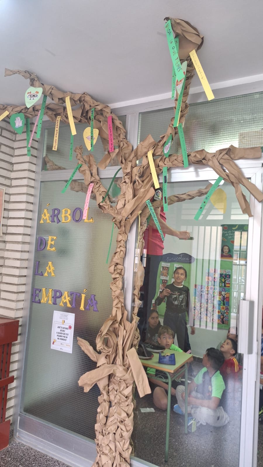 Los alumnos y alumnas del cole, junto con sus maestr@s conmemoran el día de la salud mental dejando sus mensajes en el “Árbol de la empatía”.
