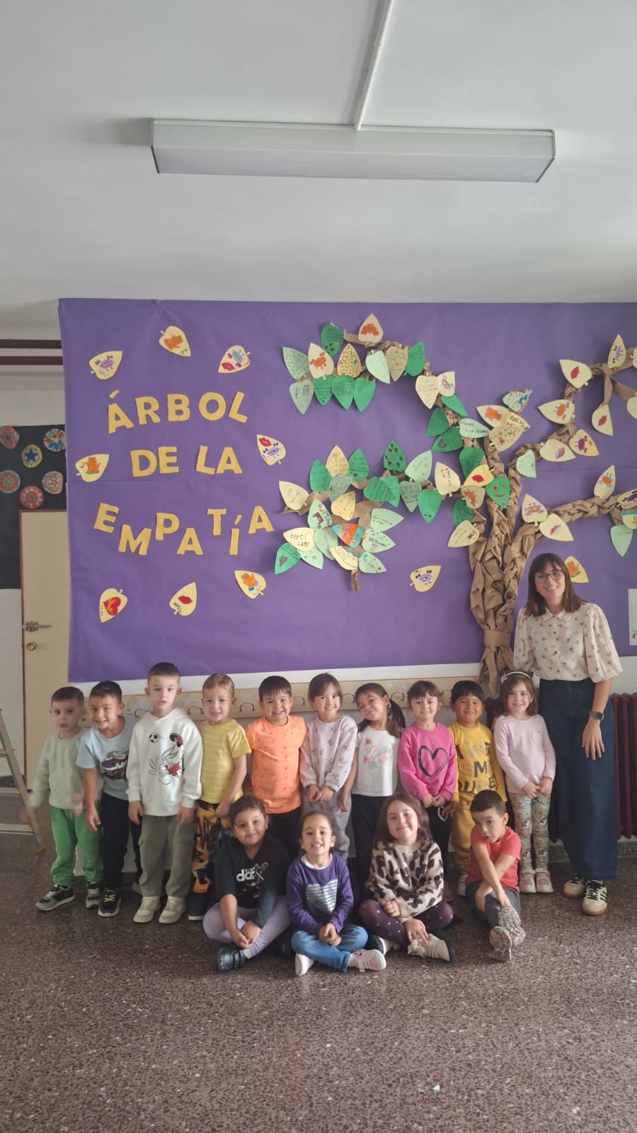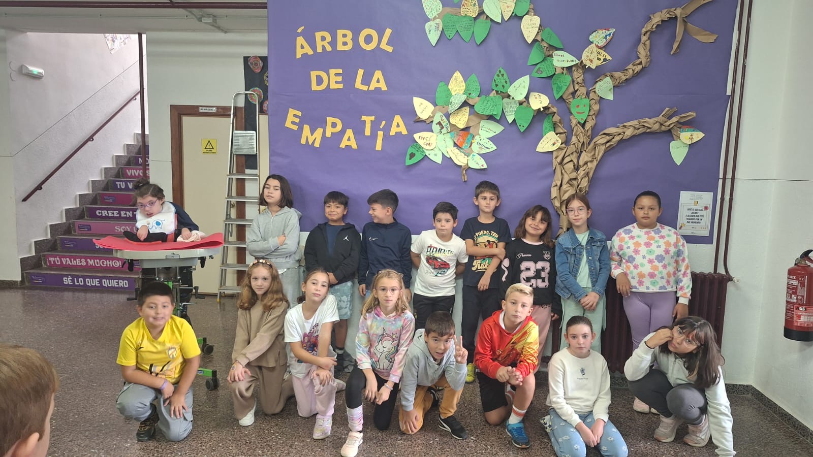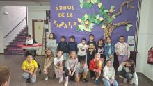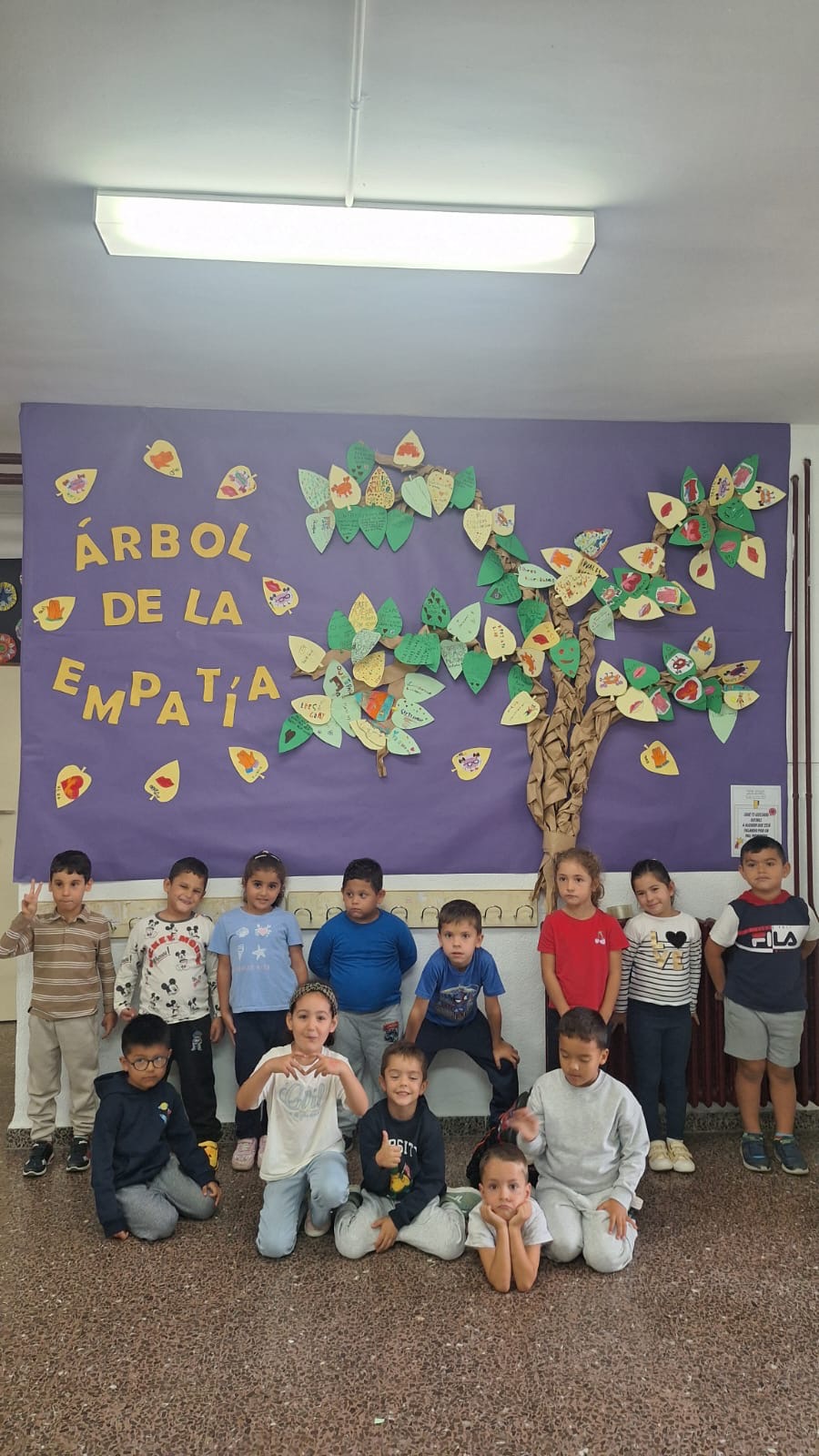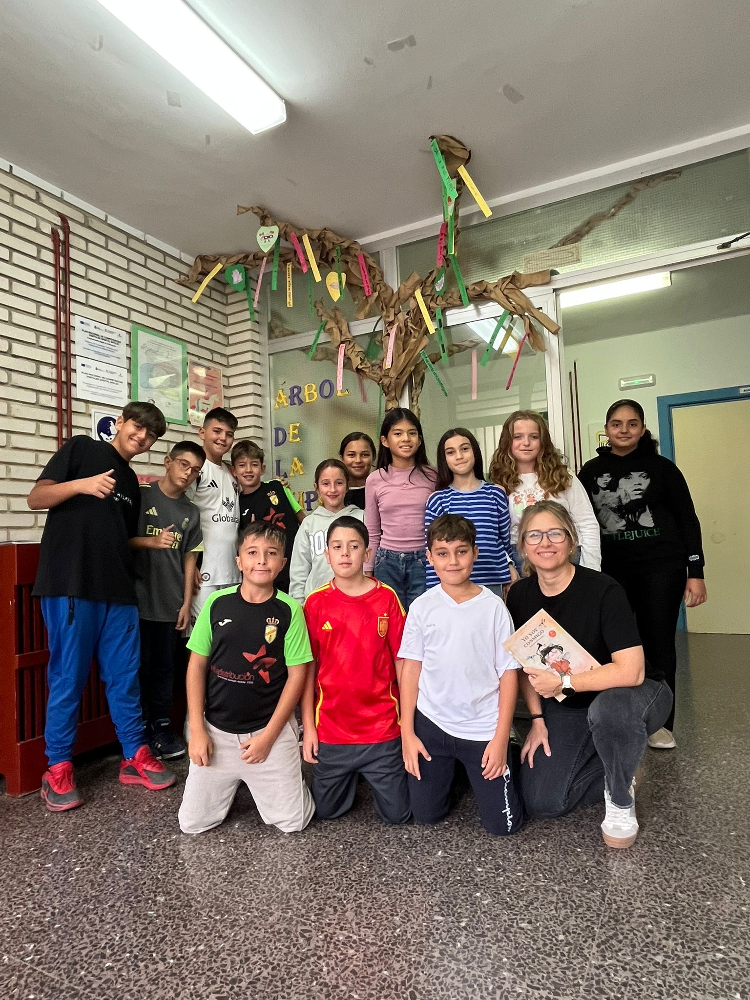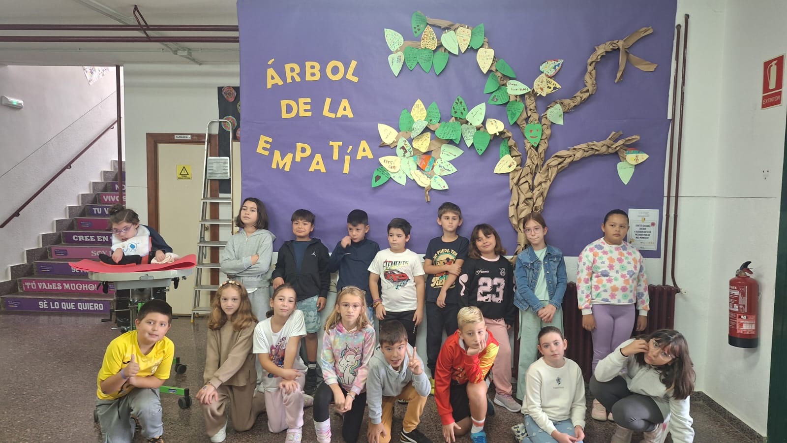 Los alumnos y alumnas del cole, junto con sus maestr@s conmemoran el día de la salud mental dejando sus mensajes en el “Árbol de la empatía”.