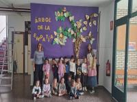 Los alumnos y alumnas del cole, junto con sus maestr@s conmemoran el día de la salud mental dejando sus mensajes en el “Árbol de la empatía”.